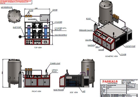 1. Overview & Design Philosophy The Oxygen Boosting System is meticulously engineered to convert low-pressure oxygen (3–6 bar) from PSA/VPSA generators into high-pressure output (up to 140 bar) for cylinder filling, entirely via pneumatic actuation. By removing electrical drives from the oxygen circuit, it inherently eliminates ignition sources, streamlines oxygen-service certification, and reduces maintenance associated with motors and gearboxes. Core design principles include: • Modularity & Scalability: Interchangeable skid modules—drive-air conditioning, dual-stage boosters, intercooler, receivers, control panel—connect via quick-release clamps and standardized flanges to facilitate field upgrades or capacity expansions (e.g., adding a third booster stage). • High Reliability: Pneumatic actuators and booster pistons rated for >1 million cycles; dynamic seal redundancy; critical relief and check valves selected per MIL-STD-901D for shock/vibration environments. • Serviceability & Accessibility: Front-facing service bay encloses filters, valves, and seals behind a hinged door. Color-coded pneumatic tubing with quick-disconnect couplers reduces maintenance downtime to < 2 hours per routine service. 2. Detailed Applications • Medical & Emergency Response: ▹ Hospital Bulk Fill: Capable of refilling 200 K-size cylinders in an 8-hour shift at 140 bar. ▹ Mobile Field Units: ISO-containerized variant combines diesel-driven air compressor (150 kVA genset) and oxygen booster for self-sustained operation in disaster zones. • Industrial Gas & Combustion: ▹ Oxy-Fuel Cutting/Welding: Precise oxygen dosing integrated via analog 4–20 mA input to plant DCS, reducing fuel consumption by up to 12%. ▹ Advanced Oxidation Processes: High-pressure O2 injection into catalytic reactors accelerates degradation of recalcitrant organics in wastewater. • Defense & Aerospace: ▹ Forward Operating Bases & Armored Vehicles: Lightweight trailer skid (~900kg) supports portable breathing-apparatus fills; incorporates quick-release anchor mounts. ▹ Test Stands & Chambers: Supplies high-purity oxygen to missile-propulsion test cells; synchronized with ignition sequences via factory-programmed PLC timing functions. • Research & Analytical Laboratories: ▹ Cryogenic Probe Stations: Maintains oxygen supply pressure within ±0.1 bar to ensure repeatable thermal contraction in low-temperature physics experiments. ▹ Analytical Instrumentation: Continuous, pulsation-free oxygen feed for FT-IR, GC/MS, and plasma reactors requiring < 1 ppm particulate and oil. 3. Technical Specifications