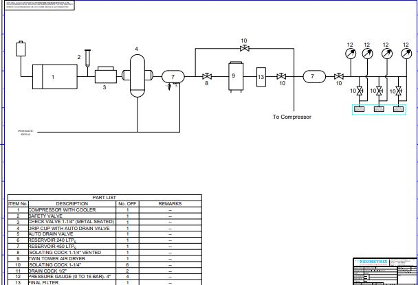 • Pneumatic reservoirs (240L & 450L) with auto-drains.