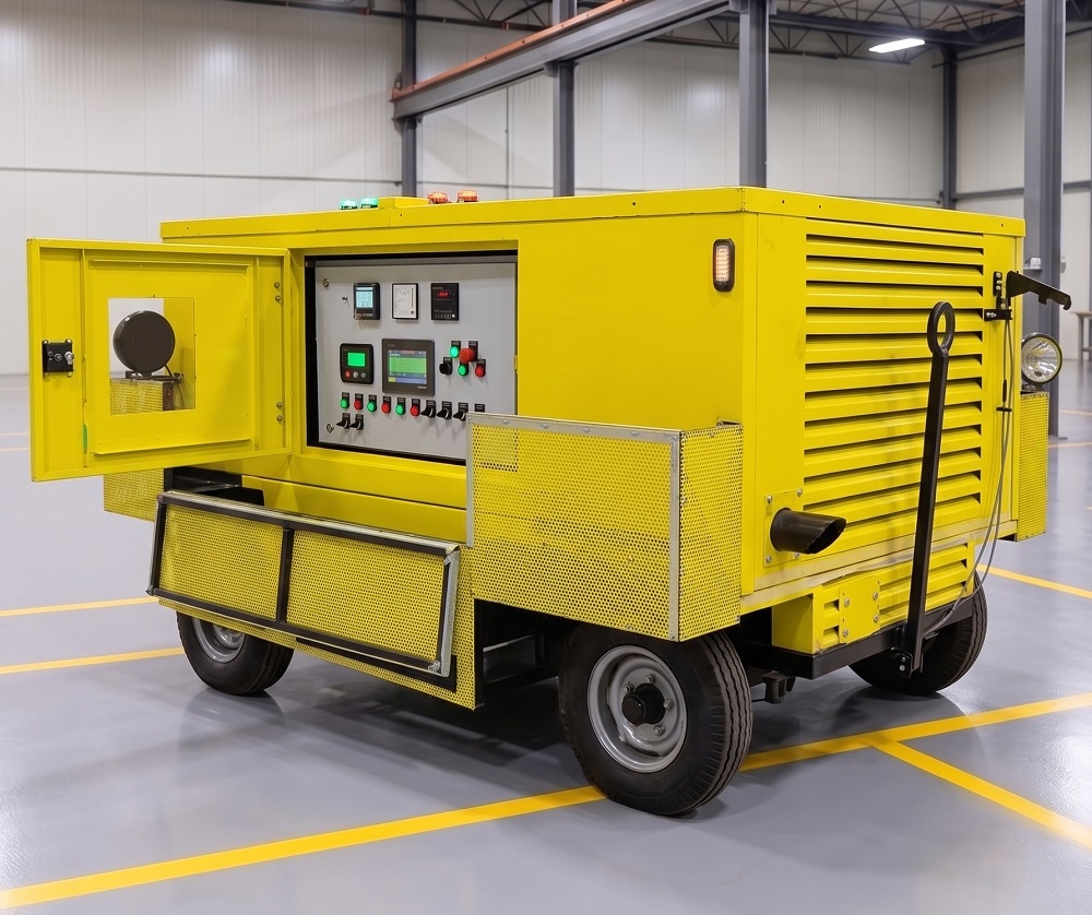 At the core of the GPU is a diesel engine-driven alternator system. The engine drives a high-speed alternator, ensuring stable frequency and voltage output even under dynamic load conditions. An integrated Automatic Voltage Regulator (AVR) maintains consistent voltage levels, while electronic speed control ensures frequency stability in compliance with aviation standards.