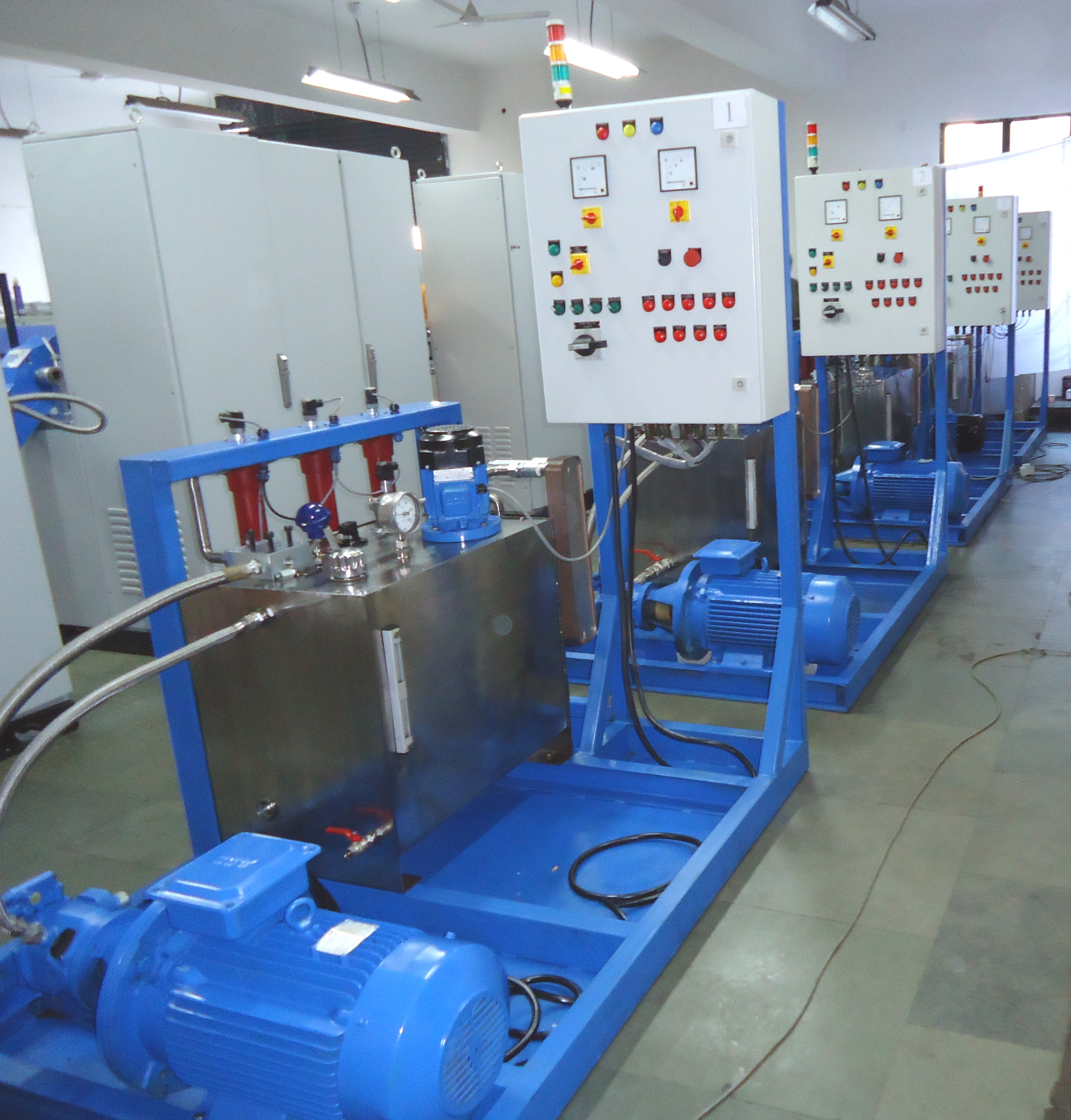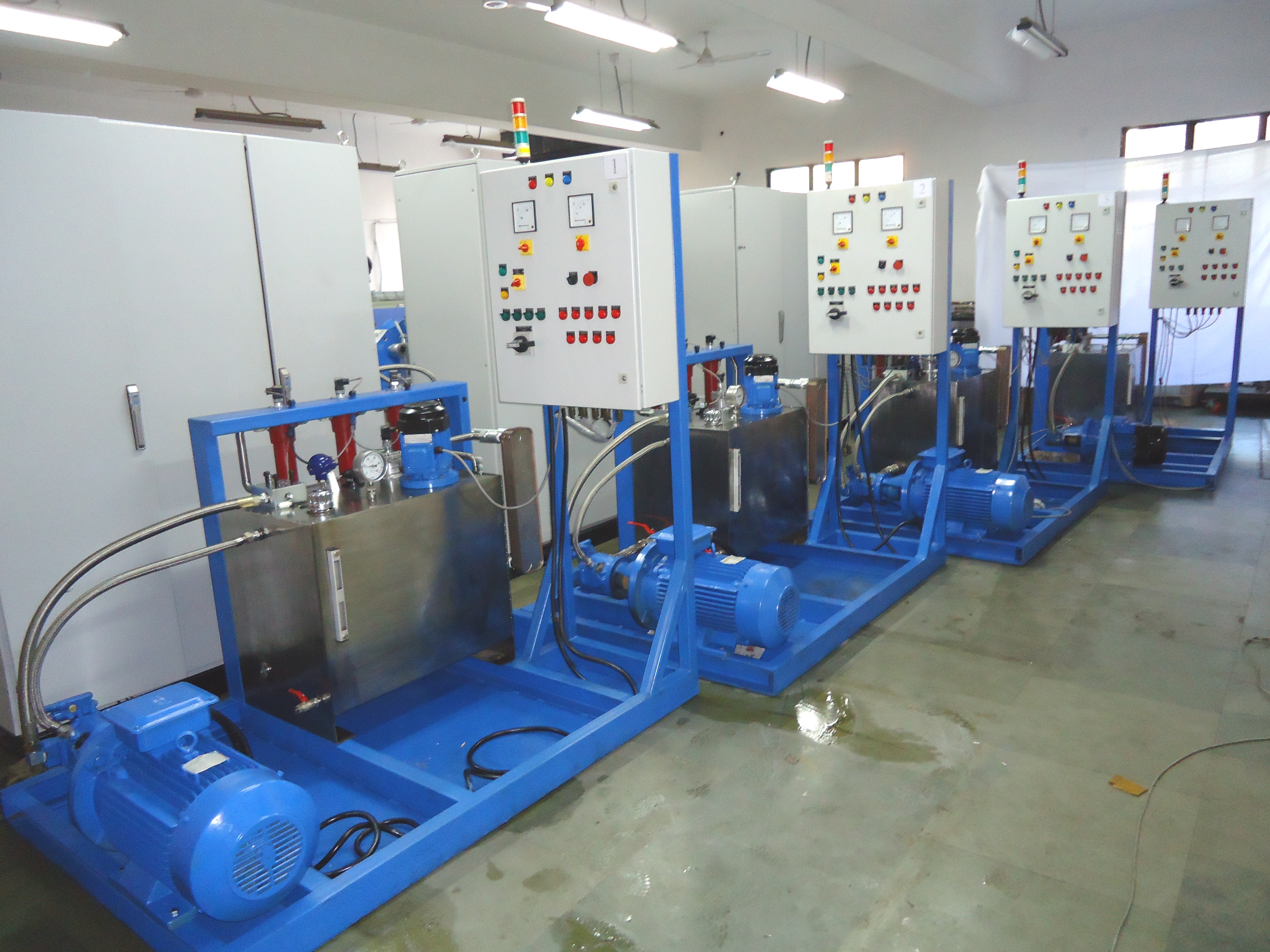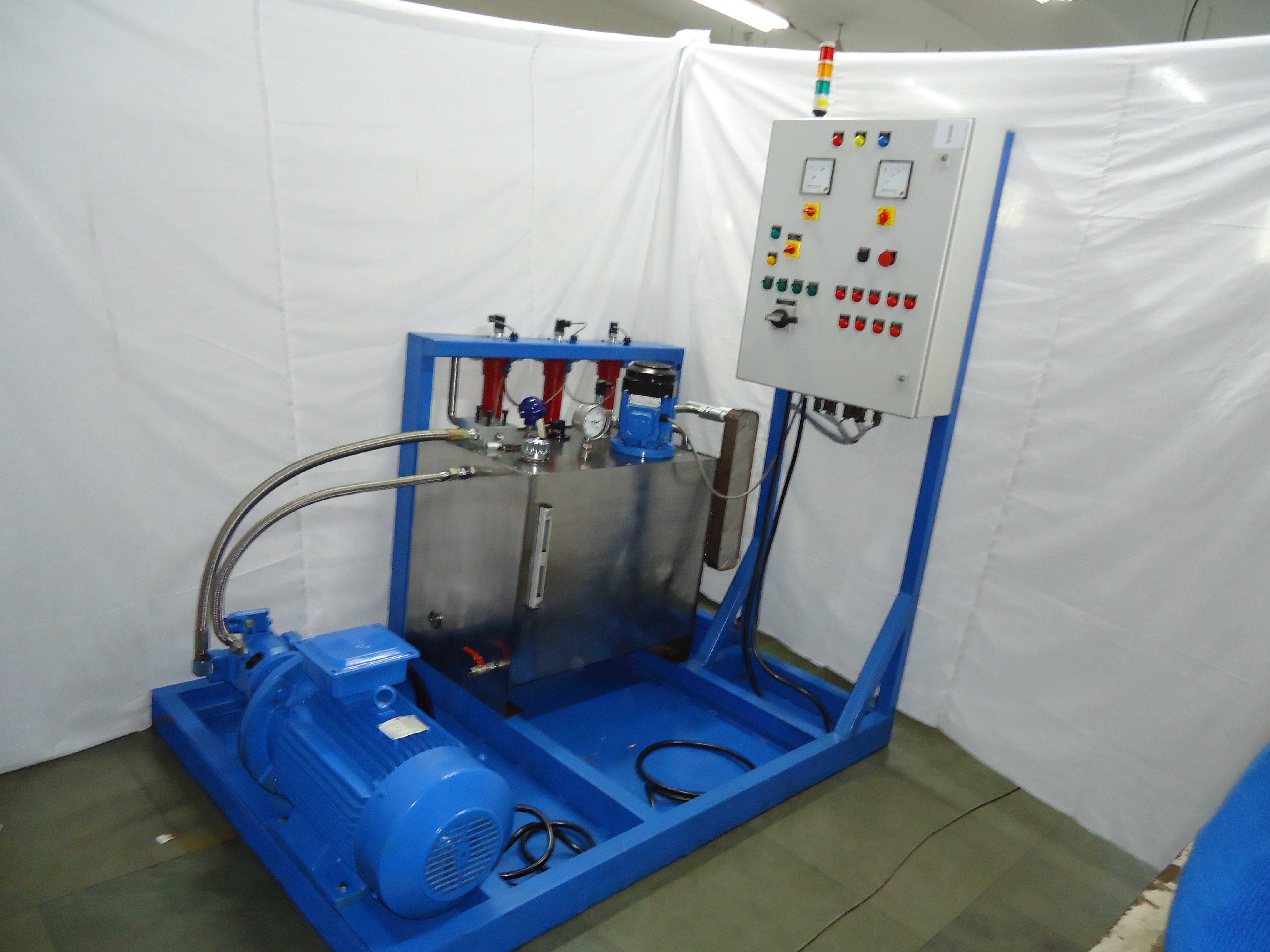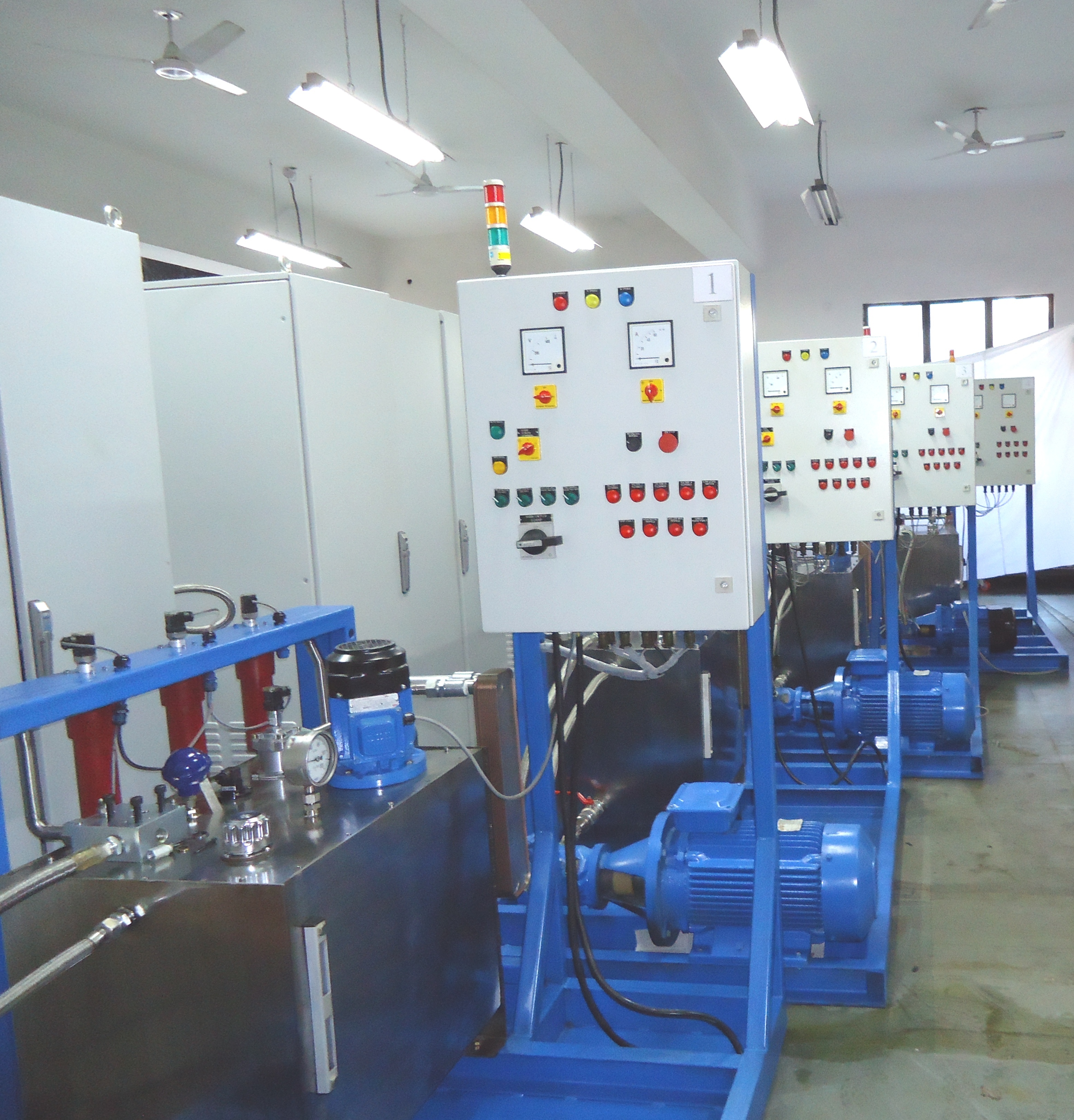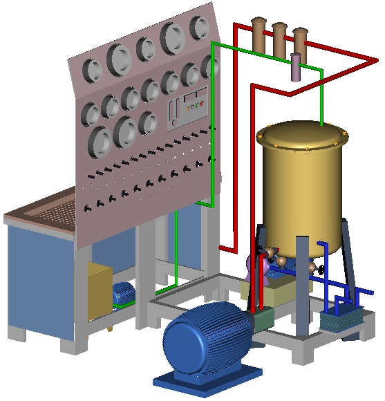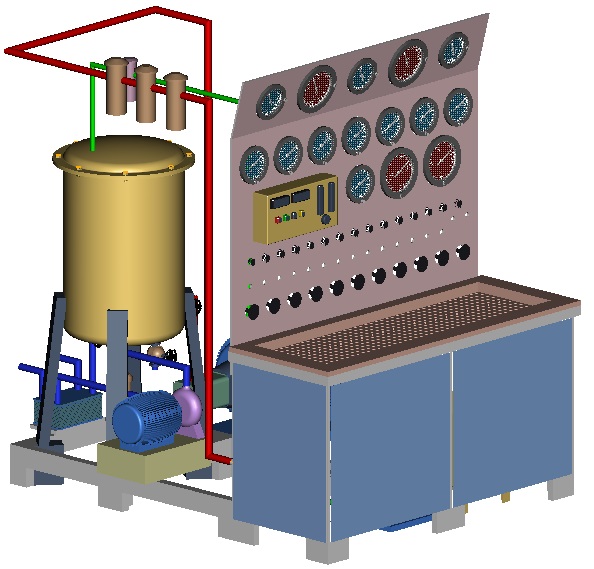 • Control Panel: The Control Panel will be made of 4mm SS sheet and will be fitted with the Test Bed and The room wall. It will consist of all the Pressure Gauges (ATF/Air/Vacuum), Control Valves, Pressure Regulators, Electrical Clogging Indicators, Temperature Sensors and Level Indicators. Tubing for connecting all the accessories, with the main piping circuit will be done behind the Control Panel by means of appropriate fittings. The size of the Panel will be (1750×4×1350) mm.
