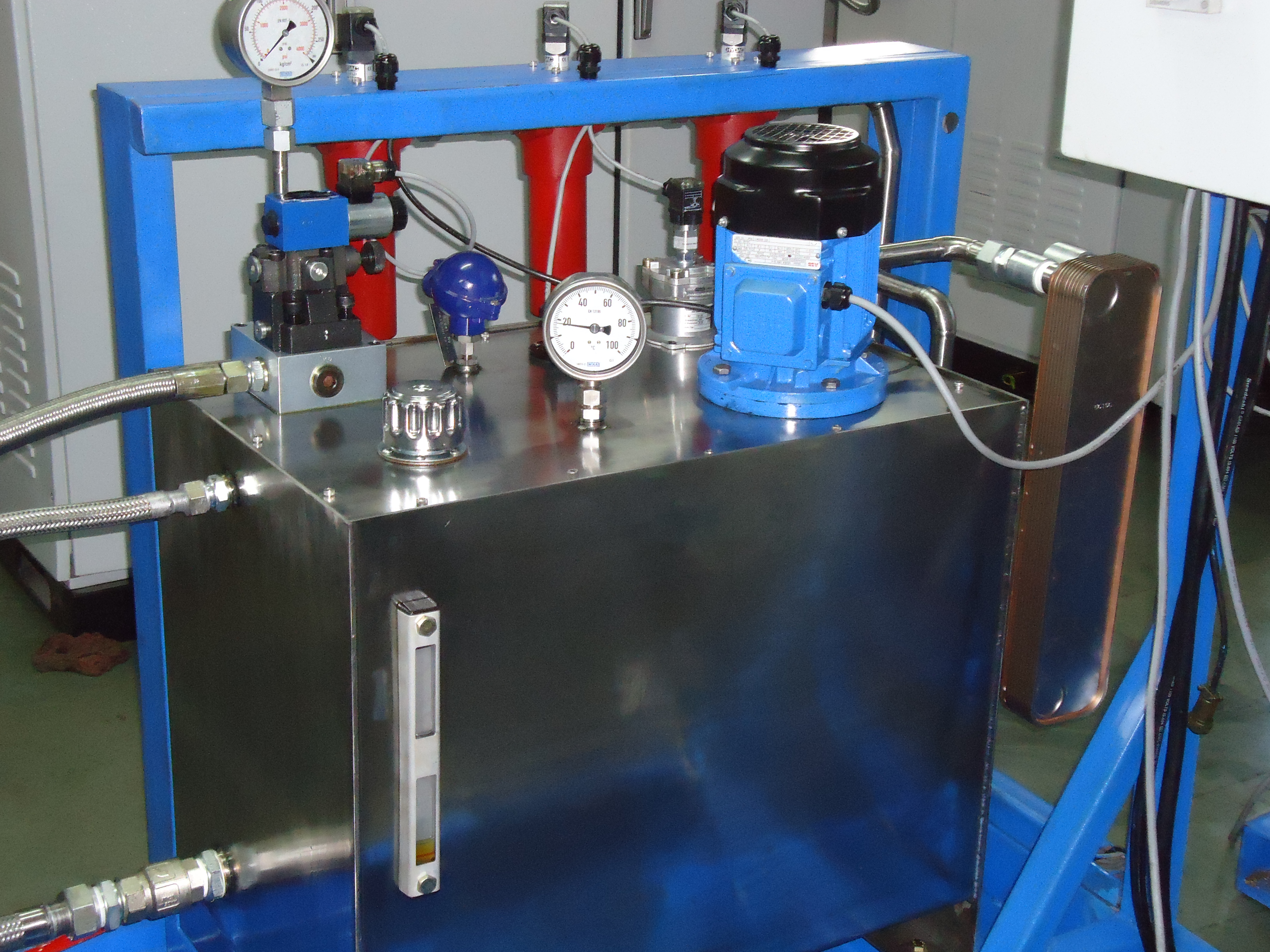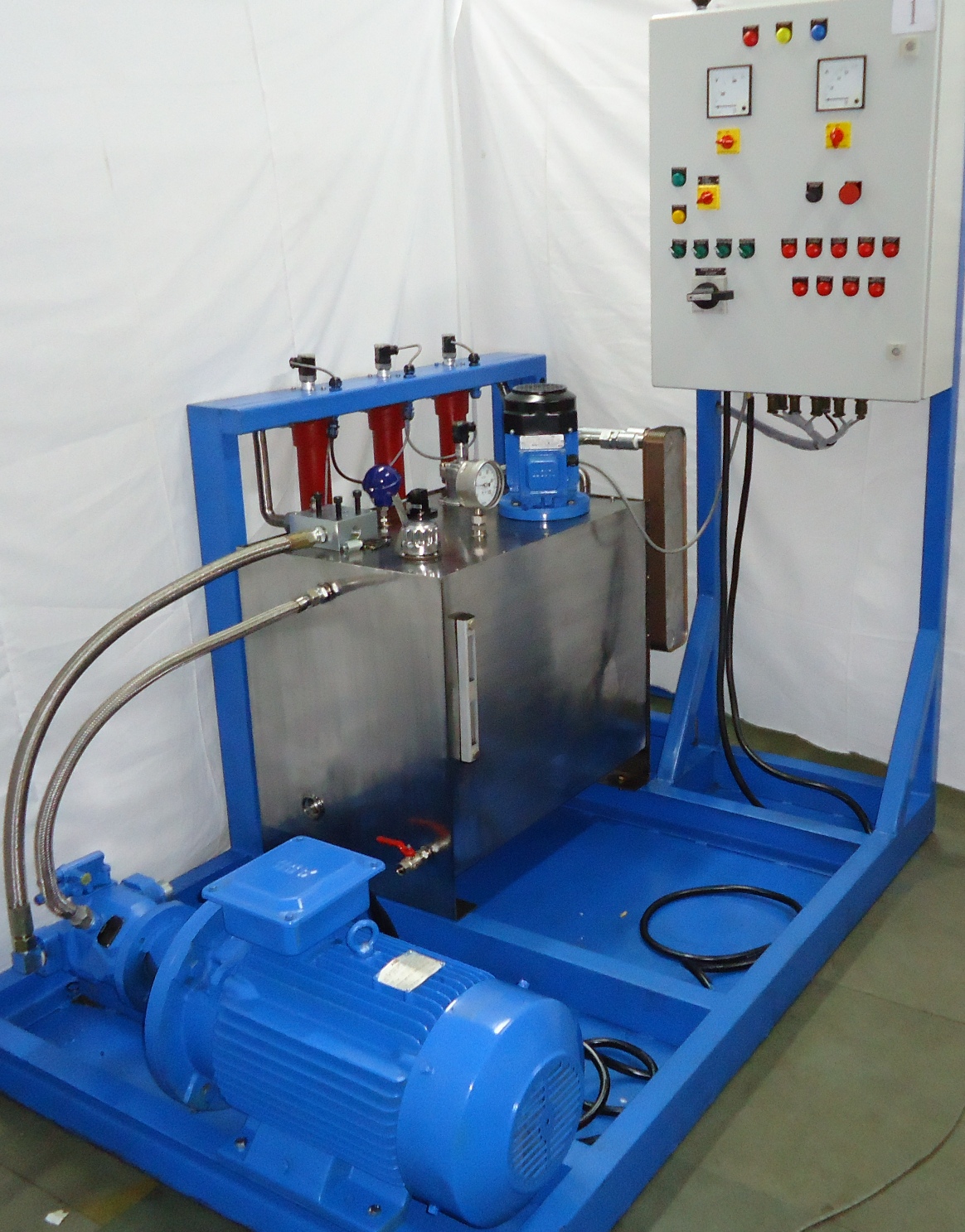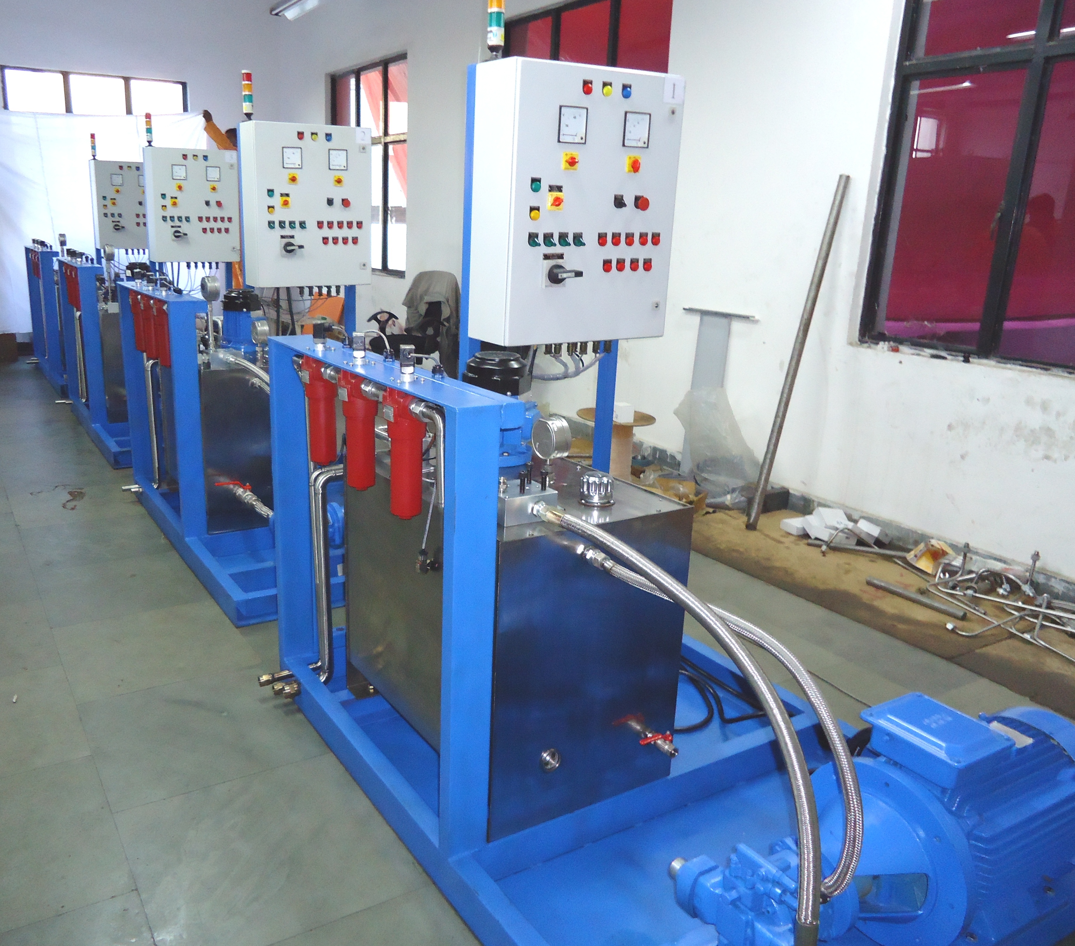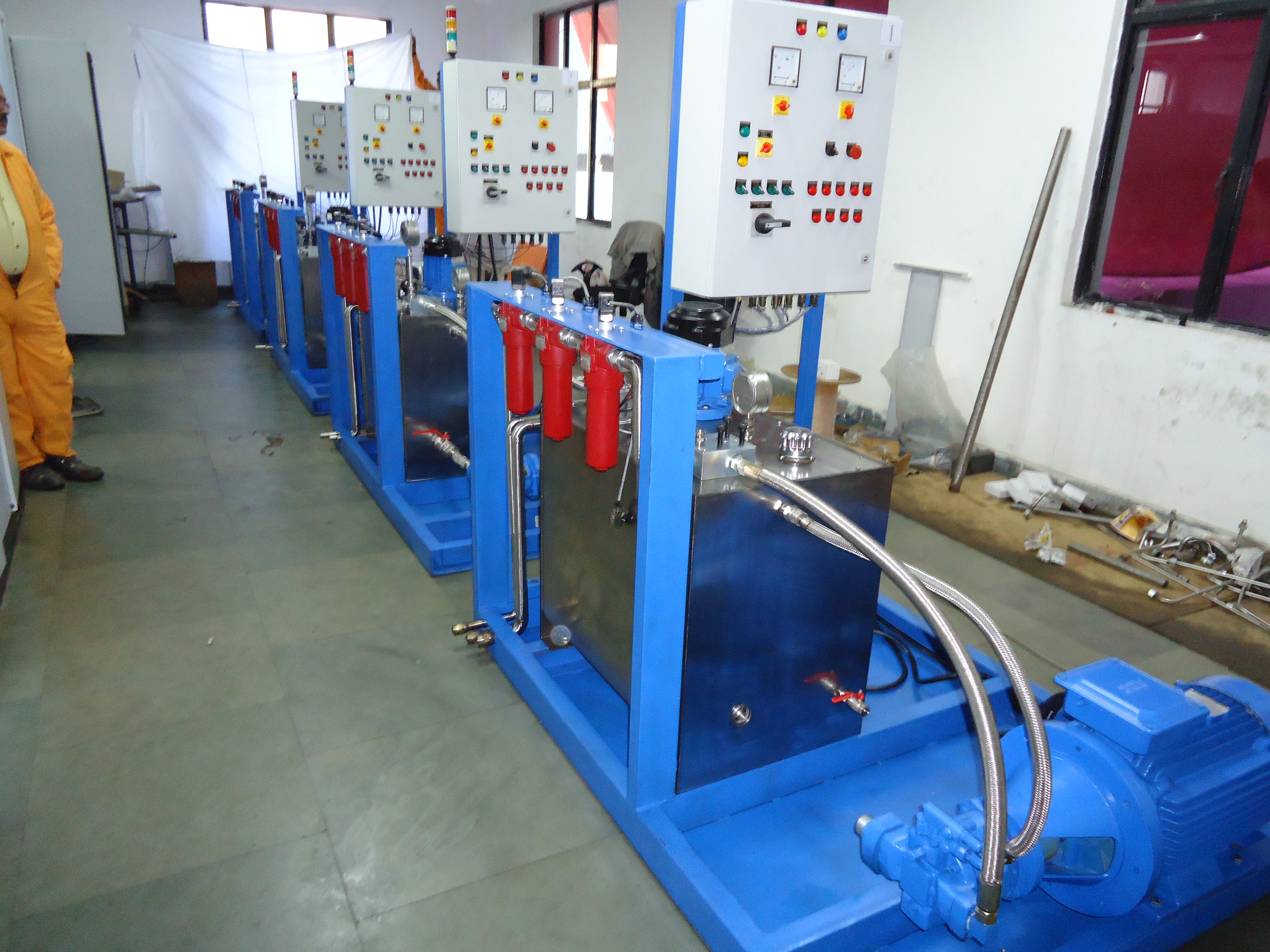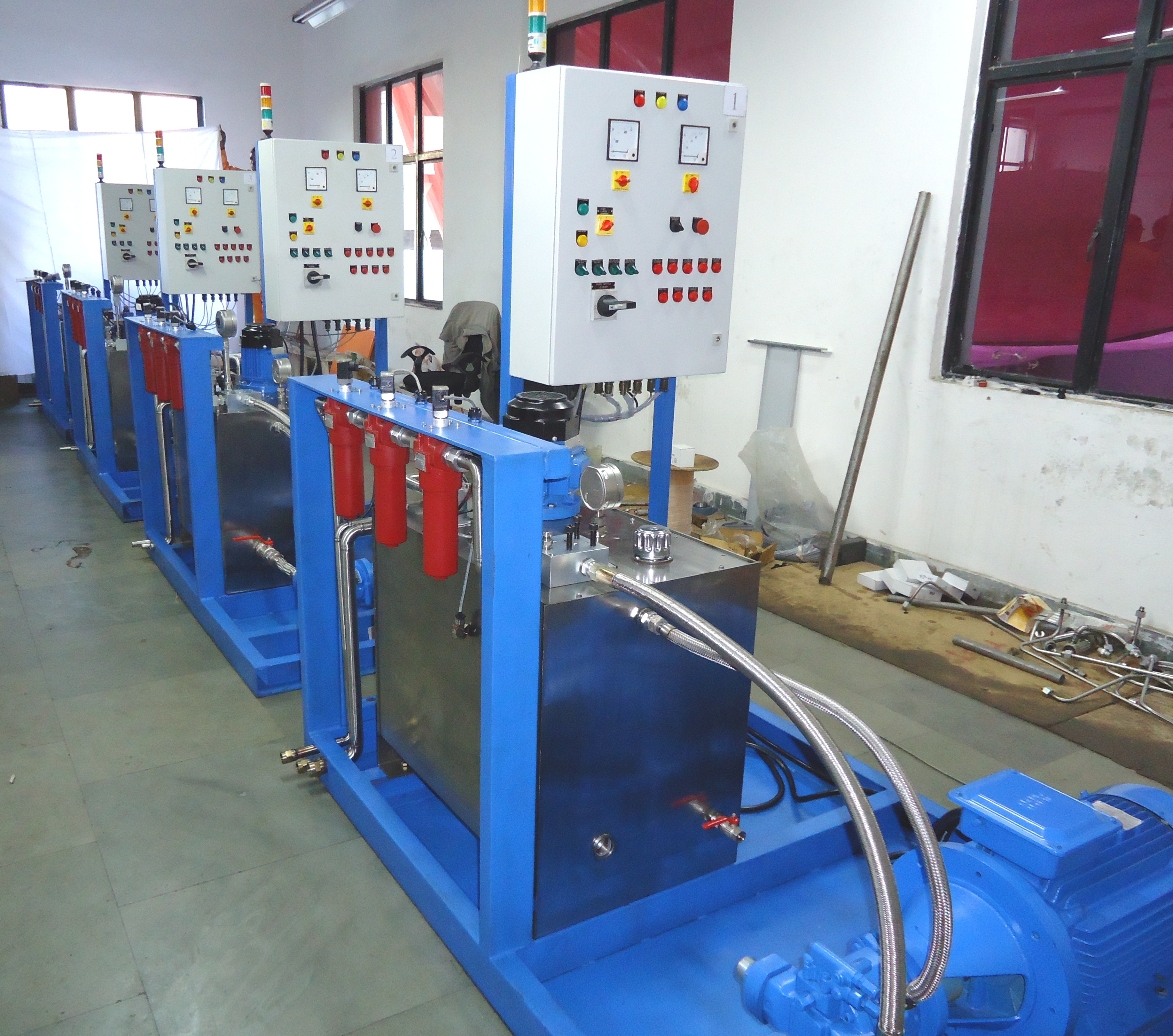 • Control Panel: The Control Panel will be made of 4mm SS sheet and will be fitted with the Test Bed and The room wall. It will consist of all the Pressure Gauges (ATF/Air/Vacuum), Control Valves, Pressure Regulators, Electrical Clogging Indicators, Temperature Sensors and Level Indicators. Tubing for connecting all the accessories, with the main piping circuit will be done behind the Control Panel by means of appropriate fittings. The size of the Panel will be (1750×4×1350) mm.