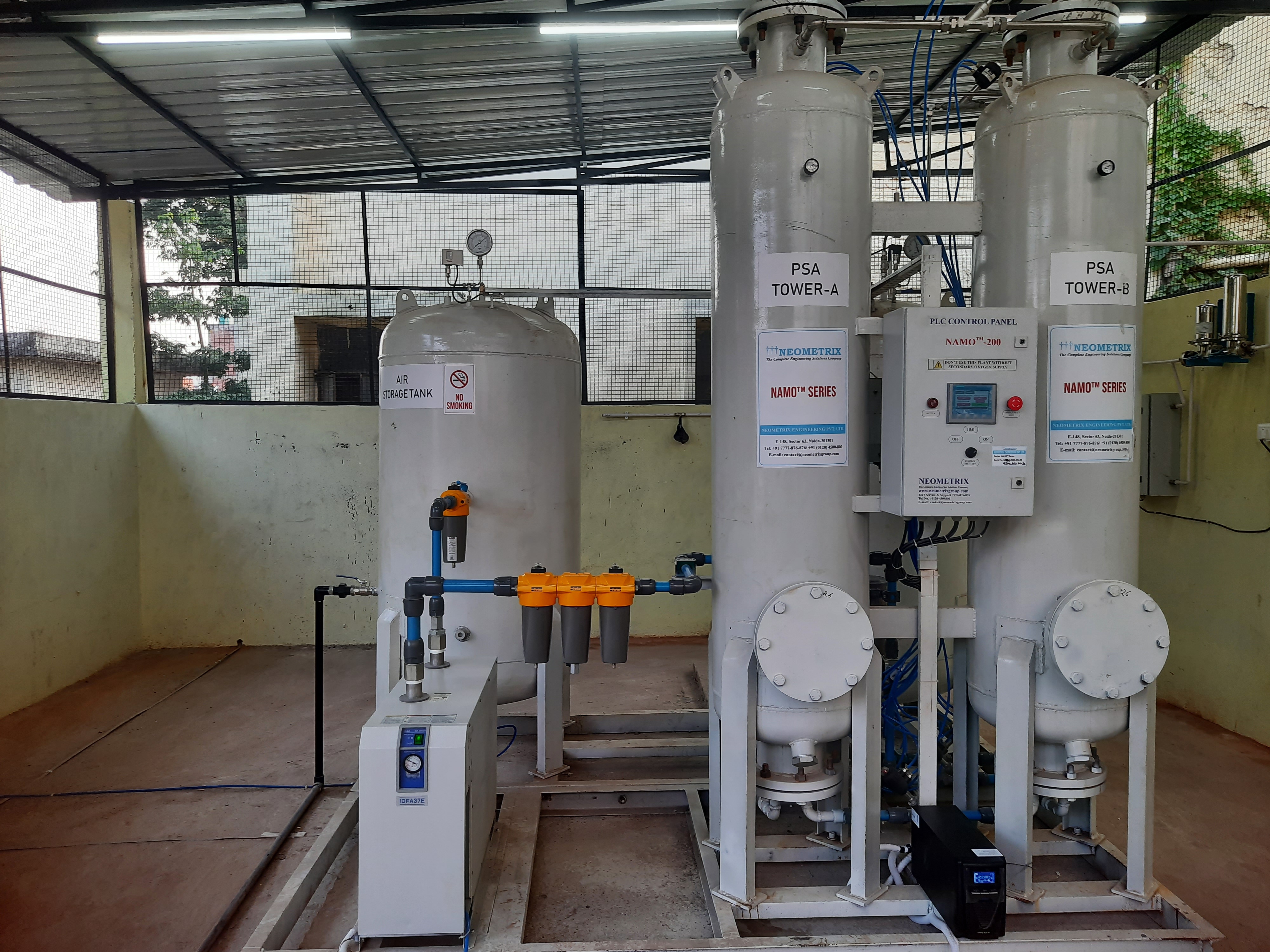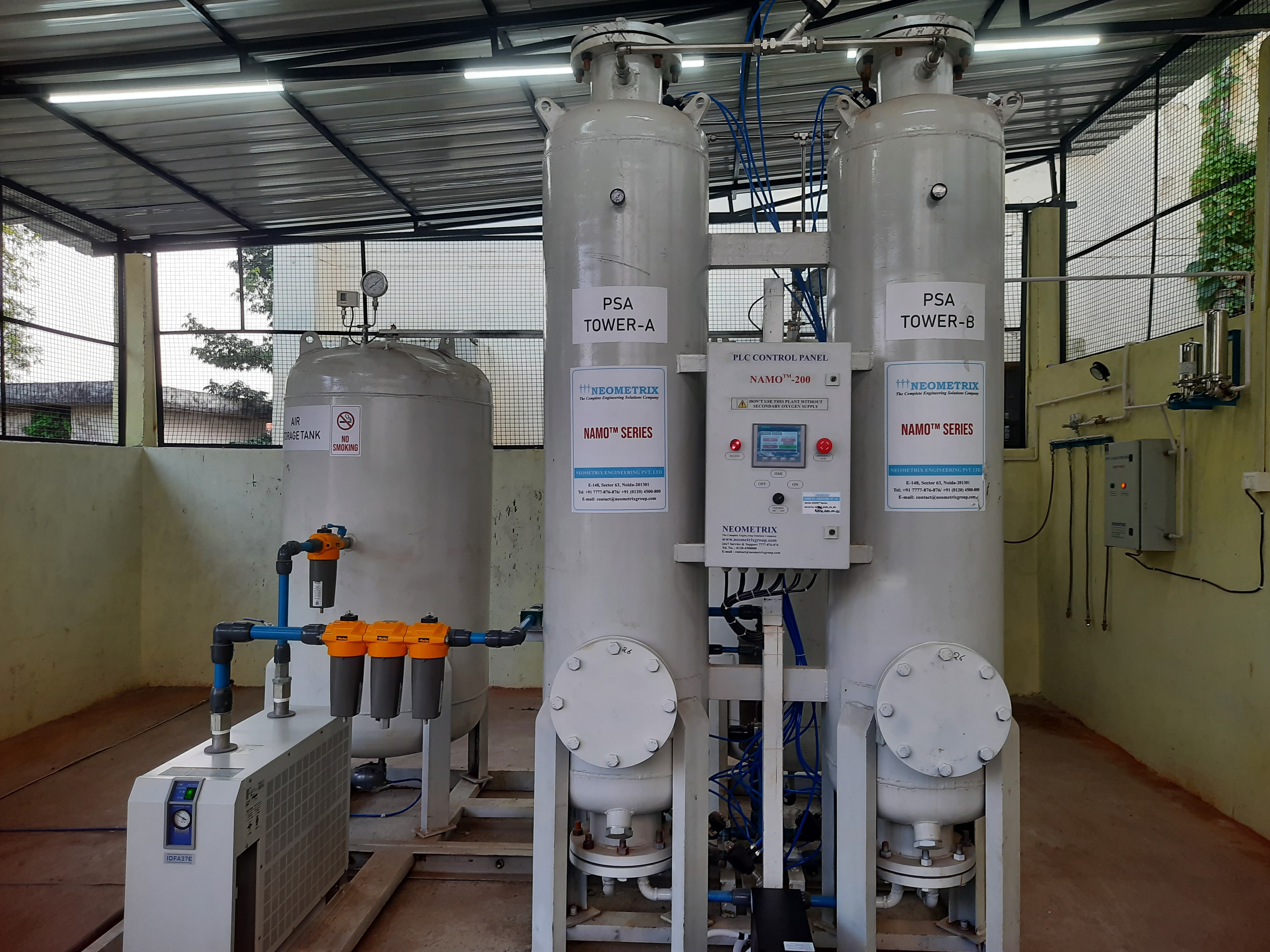 Oxygen flow rate: 160-1500 LPM. Oxygen pressure :4.2 bar. Separate connection for hospital bed. Separate connection for manifold. Auto change with manifold supply if PSA will failure. Pneumatic switch-over is accomplished automatically. Automatically resets itself for next cycle when depleted bank is replenished. No manual resetting required. Inlet connection: 1’’ BSP High pressure regulator relief valve: 15.5 bar. Incoming voltage: 220 VAC.