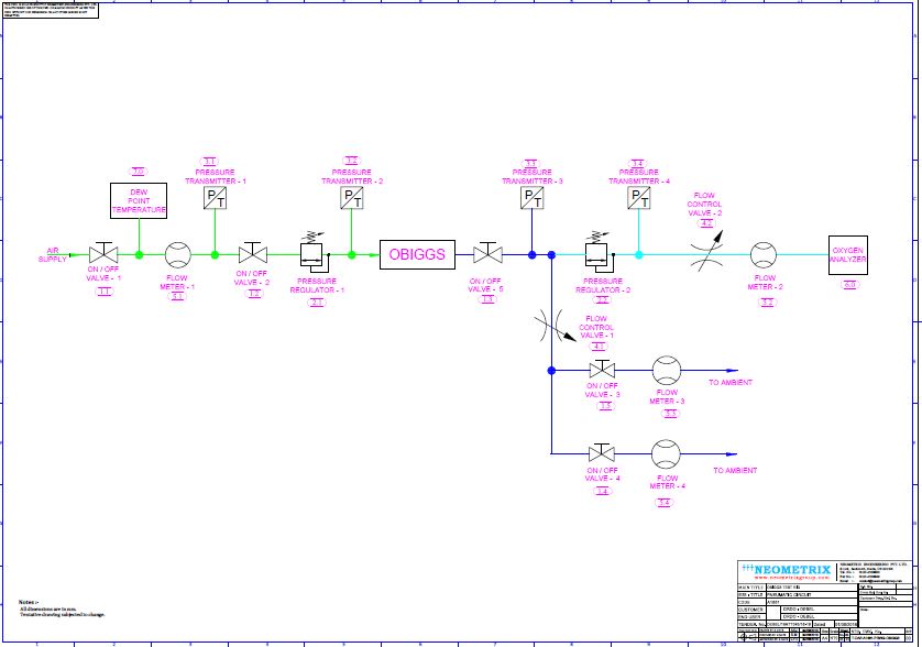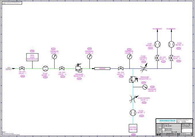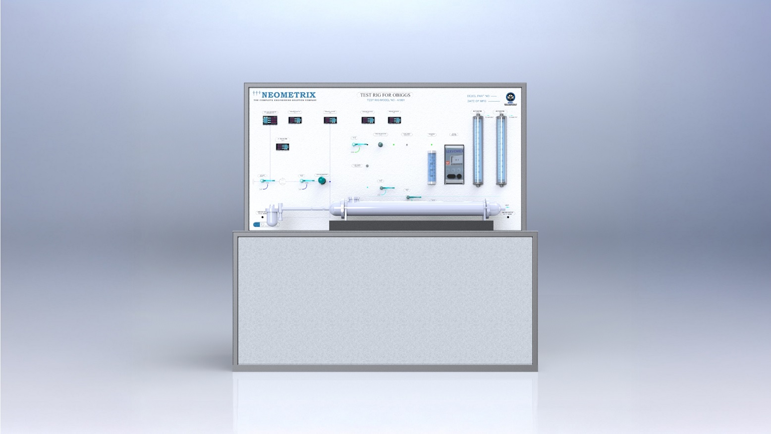 1. Introduction The Test Rig for OBIGGS is a turnkey ground-station platform built to execute exhaustive qualification, acceptance testing and R&D for On-Board Inert Gas Generating Systems (OBIGGS) destined for military and transport aircraft. By precisely reproducing bleed-air conditions (pressure, temperature, humidity and dynamic transients), this rig validates every critical performance metric—membrane integrity, inert-gas purity, response times and leak tightness—ensuring systems meet or exceed industry and regulatory mandates. Core Deliverables: • Fully sequenced, PLC-driven test profiles with customizable parameters • High-speed data capture (1 Hz–10 Hz) of pressure, flow, temperature and gas composition • Auto-generated certification-ready reports and raw data export (CSV/PDF/XML) • Turnkey installation, operator training and maintenance support 2. OBIGGS: Purpose & Application 2.1. Why Fuel-Tank Inerting? Fuel-tank ullage—filled with a fuel–air mixture—becomes explosive if the oxygen fraction exceeds~12 % by volume. Ignition sources include: lightning strikes, static discharge, combat damage and high-energy sparking. Inerting displaces oxygen, breaking the combustion triangle (fuel + oxidizer + ignition), thus preventing catastrophic tank explosions. 2.2. OBIGGS Operation 1. Bleed-Air Extraction: Air tapped from engine compressor section (200–300 °C, 4–7 bar). 2. Air Pre-Treatment: Multi-stage filtration and heat-exchangers remove particulates, oil carryover and moisture to ISO 8573-1 Class 1.1.1. 3. Membrane Separation: Hollow-fiber membrane bundles selectively permeate O₂ and H₂O; retained nitrogen-enriched air (NEA) achieves ≥ 90 % N₂ purity. 4. Ullage Inerting: NEA is delivered continuously to the fuel-tank ullage, maintaining O₂ ≤ 10–12 %. 5. Permeate Management: O₂-rich exhaust vents overboard or recycles to low-pressure return. 2.3. Benefits & Use Cases • Survivability: Prevents explosion under battle damage or lightning. • Regulatory Compliance: Meets FAA/EASA fuel-tank safety rules; MIL-STD-810G and SAE AS82137. • Weight & Volume Savings: No heavy gas bottles—membrane modules are compact and light. • Continuous Protection: Inerting maintained throughout all flight phases. • Low Lifecycle Cost: Minimal moving parts; membrane life > 5 000 hr with simple filter changes. Deployments: F-16, Rafale, Eurofighter, A-330 MRTT, KC-135, military helicopters, UAVs. 3. System Architecture 3.1Air Supply & Regulation - 8 bar(g) @ 1 000 LPM NTP primary inlet, ISO 8573-1 filtration - PR-1 (0.5–12 bar, 3 500 LPM) and PR-2 (0.5–7 bar, 1 600 LPM) precision regulators - Four bi-stable ball valves (–0.95 → +30 bar, 15 mm port) for isolation 3.2 Flow Control & Measurement - Manual needle valves for sweep-rate profiling (1–10 bar) - Mass flow meters: ▪ FM-1: 0–100 LPM (±2 % F.S.) ▪ FM-2: 50–500 LPM (±2 % F.S.) ▪ FM-3/4: 94–944 ccm (±2 % F.S.) for low-flow 3.3 Oxygen Analysis - Servomex MiniMP 5200 paramagnetic analyzer - 0–100 % O₂ range, ±0.02 % accuracy, T₉₀ < 15 s - Automated zero/span calibration; on-board pressure/temperature compensation 3.4 Control & Data Acquisition - Siemens S7-1200 PLC with analog/digital I/O - 10.1″ HMI touchscreen for real-time control and trending - Windows 10 laptop with custom SCADA: test scripting, live charts, CSV/PDF/XML export 4. Technical Specifications