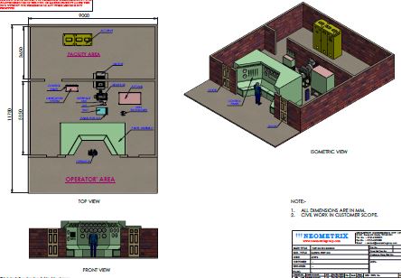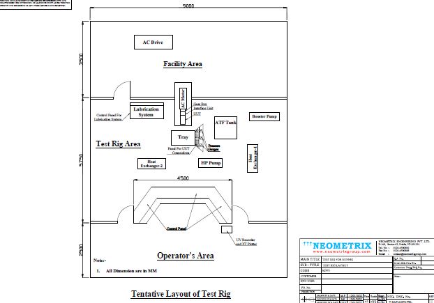Introduction The Neometrix Test Rig for Running-In and Calibration of Reheat and Nozzle Control Units is a turnkey, floor-mounted facility engineered to perform the full suite of functional, leakage, sensitivity, and hysteresis tests on turbine fuel control units under realistic, simulated service conditions. Designed for aerospace applications, it integrates fuel, lubrication, pneumatic, vacuum, thermal control, drive, and data-acquisition subsystems into a compact, ergonomic layout with centralized controls and robust safety/interlock features. Applications • Reheat & Nozzle Control Unit Calibration: Static and dynamic adjustment of PRC settings, pilot-valve sensitivity, vortex-diode response, and nozzle turndown. • Leakage & Hysteresis Testing: Comprehensive air/fuel leakage checks and full hysteresis loops across operating envelopes up to 30,000 RPM. • Service-Simulation Trials: Altitude simulation, shut-down sequences, and thermal cycling to verify performance under low/high pressure and temperature extremes. • Durability & Endurance Testing: Extended run-in cycles to assess component fatigue and long-term performance. • Functional Validation: Confirmation of sensor and actuator compatibility within integrated engine control systems. • Performance Benchmarking: Comparative analysis of new vs. refurbished control units under identical test protocols. • Troubleshooting & Diagnostics: Rapid fault isolation using integrated data analytics and test-report generation. Key Features • Over 30 test procedures covering pump bearing checks, LP/HP leakage, response times, flow-control sensitivity, and full hysteresis characterization. • Automated Test Sequencing: Pre-programmed test profiles for consistent, repeatable procedures with minimal operator intervention. • Environmental Simulation: Chilled-water heat exchangers, dry-air supply, vacuum headers, and programmable altitude simulation. • Precision Drive System: 150 HP TEFC AC motor with encoder feedback (0–6000 RPM, ±1 RPM) coupled via gearbox to reach 30,000 RPM. • Integrated Safety Hierarchy: Multi-level interlocks, emergency shutdown, and explosion-proof enclosure per NEMA 7/IS 60079. • Modular Skid Design: Quick-swap quill interface and manifold trays allow rapid configuration changes between different UUTs. • Advanced Diagnostics: Real-time data visualization, automated fault detection, and customizable alert thresholds. • Remote Connectivity: Secure Ethernet interface for remote control, monitoring, and data export. • Energy-Efficient Operation: Variable-frequency drive and optimized thermal management reduce power consumption. Technical Specifications
