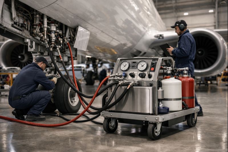 Traditional fixed servicing units often limit flexibility and increase turnaround time. Mobile service trolleys, on the other hand, allow technicians to perform hydraulic filling, flushing, pressure testing, and system bleeding directly at the aircraft location.